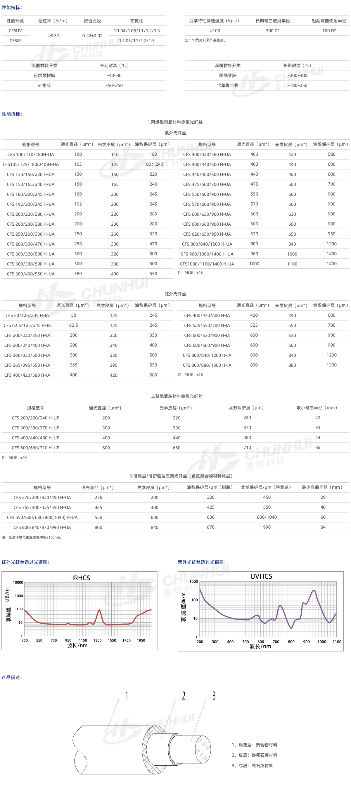 采用石英材料作為通光芯層和光學(xué)皮層,聚合物材料作為涂敷保護(hù)層;